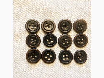 12 st Äldre Svarta Benknappar 1,5 cm Ø Allmoge Vintage.