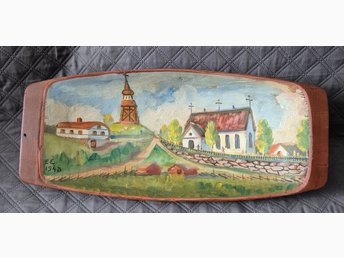 ANTIKT SKÄKTETRÄ ALLMOGE UNNA 1897 Gammal FÄSTMANSGÅVA Bemålat Blommor Fågel