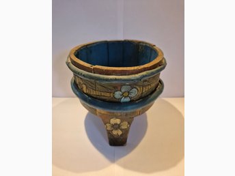 Allmoge Laggat kärl på fötter målat i blått och vitt