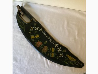 Antik smörspade trä 1821 – handskuren allmoge med initialer & rosdekoration!