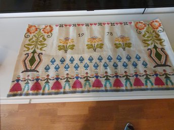 VINTAGE SÅ FIN HANDBRODERAD PÅ LINNE DUK BONAD 1978