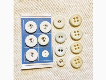 13 st Äldre Knappar Ljusa Benknappar och Tygknappar Allmoge Vintage.
