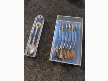 Samling med 6 souvenirskedar och 1 prydnadssked