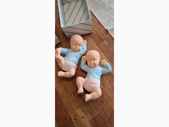 Två söta babyfigurer i blått.Bebisarna är i keramik och kommer i orginal förp.