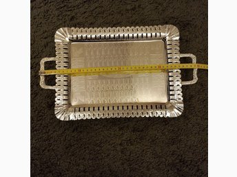 Silverfärgad bricka med handtag
