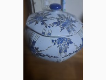 Blå och vit porslinsburk med lock