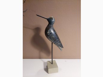 Vacker träskulptur fågel på pinne med träbas