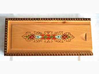 Träask med dekorativt mönster med fina färger.