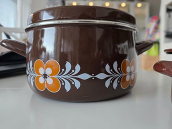 retro 70 tal Emaljerade grytor m öron 3 + 1 L m lock