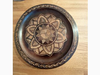Trä tallrik med dekorativ design