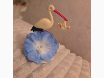 Stork med baby och blå blomma dekoration