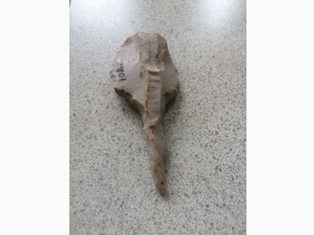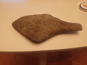 Stenåldersyxa, 15 cm lång 7 cm bred, skrovlig, se bild läs beskrivning
