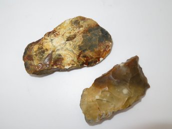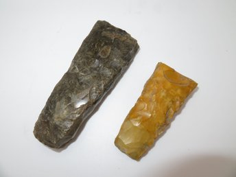 2 st. Tyknakket Flintøkser - Knækket