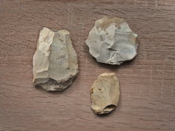 Uppsättning av 3 paleolitiska stenverktyg från France