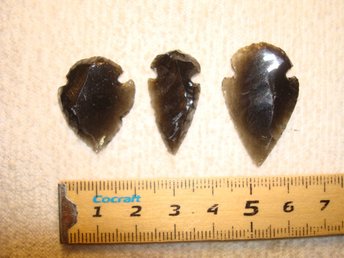 3 ST OBSIDIANPILSPETSAR FRÅN MEXIKO. NUTIDA FÖREMÅL.