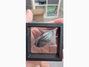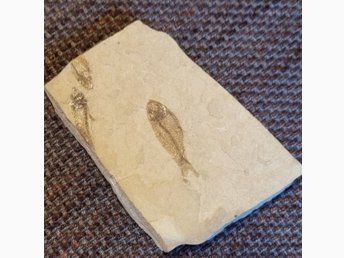 FISK - Fossiliserat djur. Fiskfossil, sannolikt av arten Knightia. 3 cm.