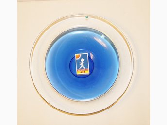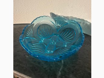 Retro vintage sekelskifte jugend - låg skål/ fat turkost glas, Eda