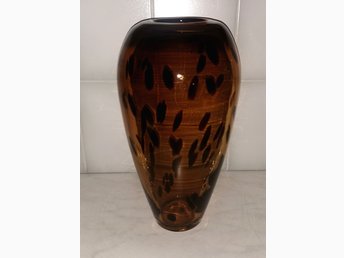 Underbar stor handblåst vas I konstglas ca 32x17 cm