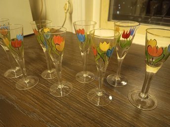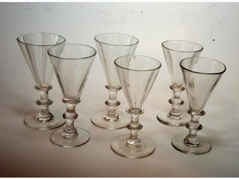Antika glas 6 st sherry spår efter glasblåsare pipa i bottnen 6 cl