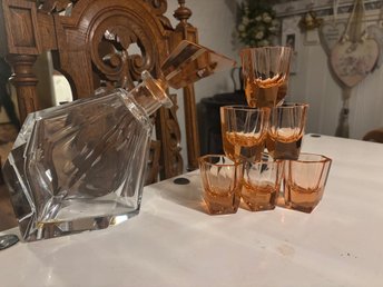 Karaff, 6 glas, Diamantformad karaff, Art Deco, vintage, -