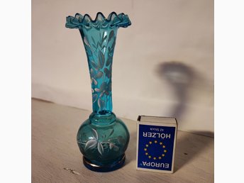 Orrefors troligtvis 1960-talet ljusblå glasvas mimosa gravyr