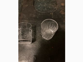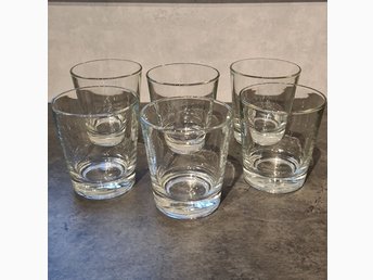 Glas.Dricks/whiskyglas mm.6 st.Tygd i glasen.H.9 cm.7.5 cm I diameter