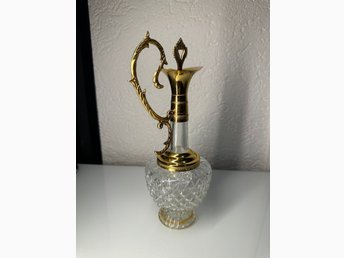 Dekanteringskärl av glas med gulddekorationer made in Italy