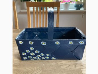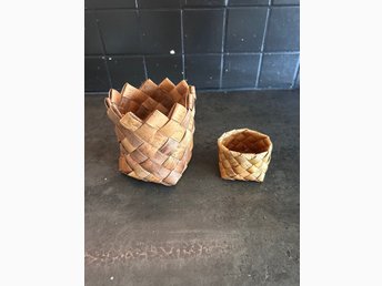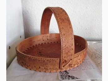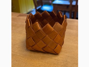 Flätad korgskrin korgväska korg spånkorg hantverk hemslöjd vitage lockkorg