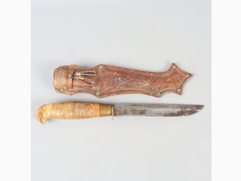 Samekniv. Sign.A.K.Hantverk. Horn/skinn/trä/metall.