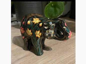 Handmålad Elefantfigur i Trä – Dekoration med Blommor