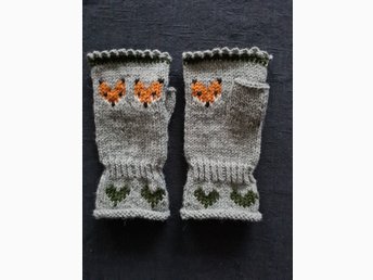 Handstickade pulsvärmare med halvtumme-rävar-hjärtan-presentide!