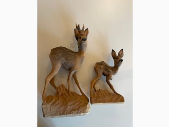 Träskulpturer - Rådjur och Kid snidat trä signerat
