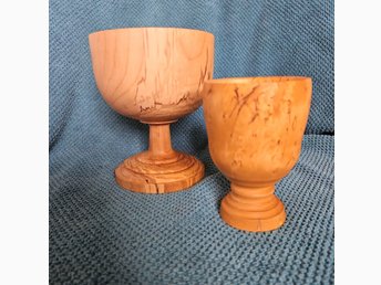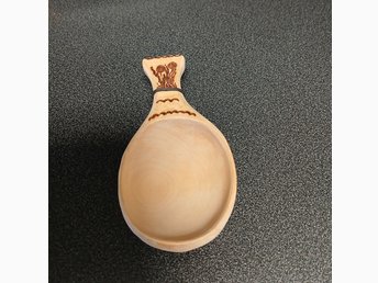 Charmig trä kåsa - tvåfinger grepp signerad- WLP- läderband