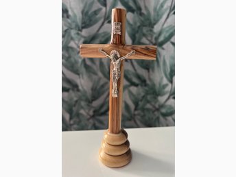 Ett vackert krucifix, kors på fot handgjort i Betlehem