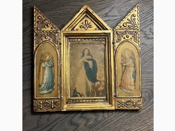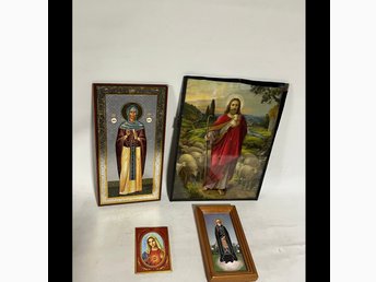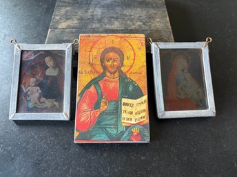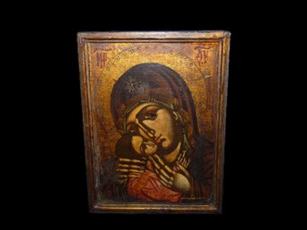 Antique oil painting Icon Virgin Mary and Baby Jesus
