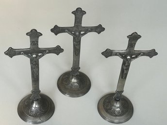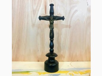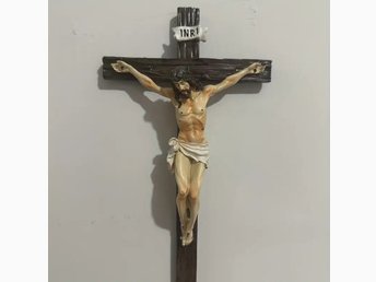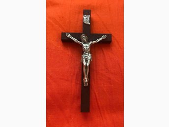 Krucifix Jesus kors, väggkrucifix mörktbrunt trä/silverfärgad metall(NYTT)