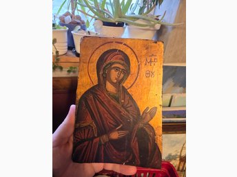 Antik grekisk ikon av Jungfru Maria 9"x12" (23x31cm)