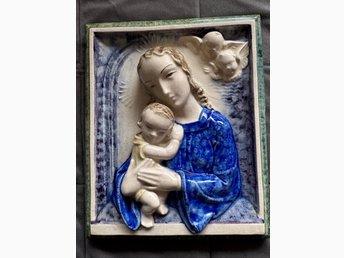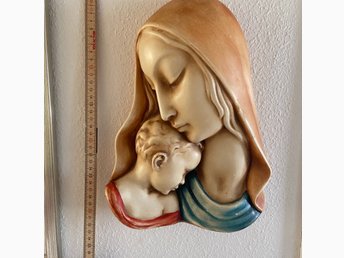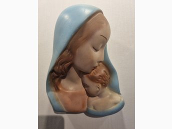 Fantastisk väggrelief madonna Maria med barn gips vintage