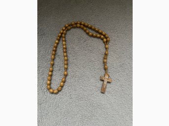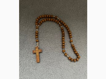 Katolsk handknuten rosenkrans/radband med bruna ovala träkulor NYTT! kors Jesus