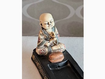 Handmålad äldre Maria-figur / ljusstake – signerad J. Bernarde