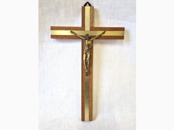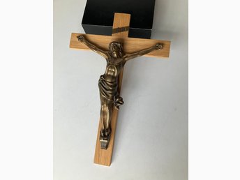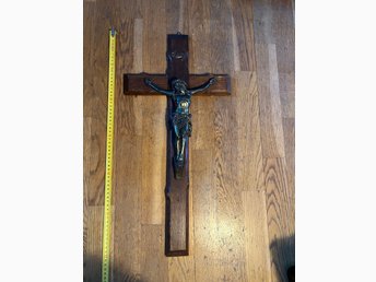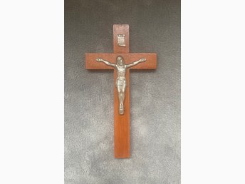 Krucifix Jesus kors, väggkrucifix brunt trä/silverfärgadmetall(NYTT)