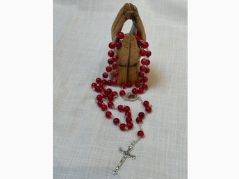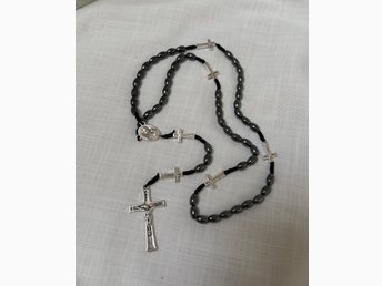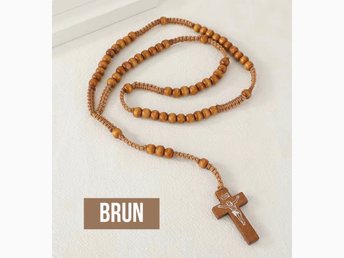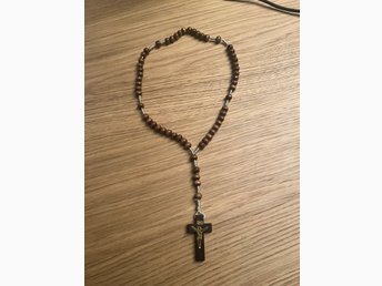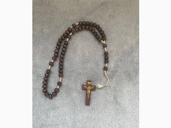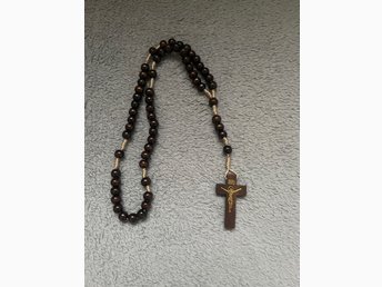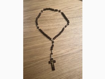 Katolsk handknuten rosenkrans/radband med mörkbruna träkulor NYTT! kors Jesus