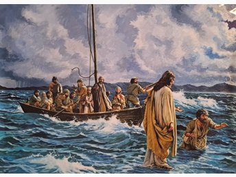 Religiös konsttryck på canvas duk - Jesus går på vatten