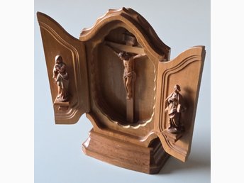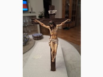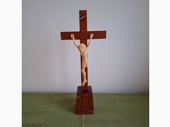 Helt nytt Träkrucifix med Jesusfigur, fint trähantverk. Köpt på marknad i Krakow