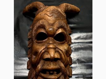Antik, Enorm! 60,5 cm, Devil, Demon, Mask, Mythiqal, Faun, Träsnideri, Djävul