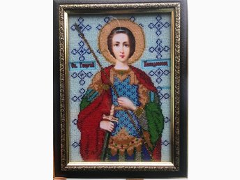 Pärlbroderi StGeorg RYSK IKON Fantastisk Handarbete av Ovanligt Slag Handbroderi