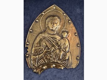 Ikonrelief i mässing – Jungfru Maria med Jesusbarnet (Benaki Museum, Aten)