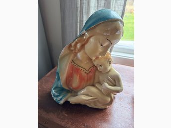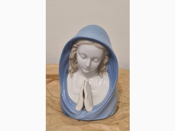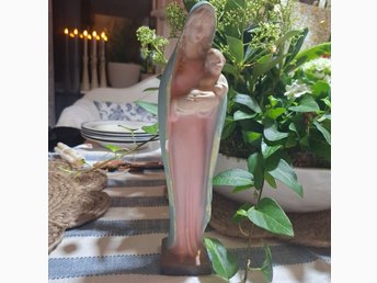 Figurin ikona i porslin Jungfru Maria Madonna staty vintage skulptur retro