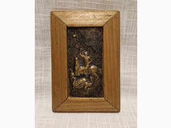 Ikon, Sankt Göran och draken, relief i mässing med träram, Rumänien, 1950-t