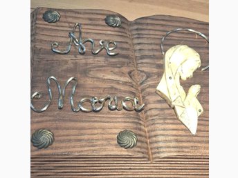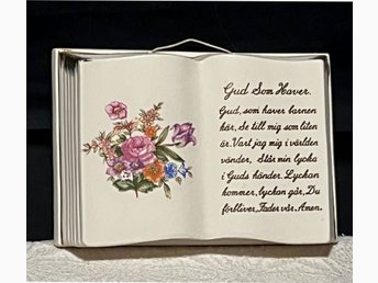 Prydnadsväggrelief,bok i keramik, palm 493. Gud som haver barnen kär